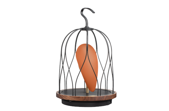 職人の手作業で作られたJINGOOsは、曲線のユニークな鳥かごデザインが特徴です。