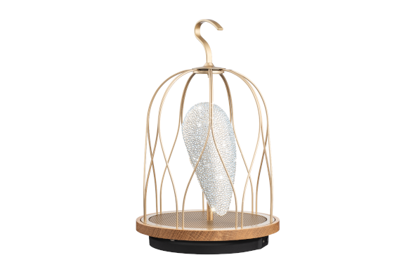 職人の手作業で作られたJINGOOsは、曲線のユニークな鳥かごデザインが特徴です。